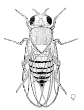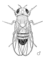 Drosophila melanogaster, иначе плодовая, или уксусная муха - маленькое, около 3 мм в длину, насекомое семейства Drosophiliadae из отряда Diptera. Этих мушек можно наблюдать около испорченных фруктов.