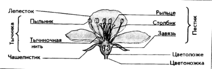 А) Рассмотреть рисунок «Строение цветка яблони».