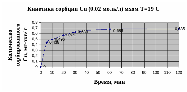 Под кинетическими кривыми сорбции принято понимать кривые, показывающие зависимость количества сорбированного вещества (ионов металла) от времени проведения сорбции, t, мин.