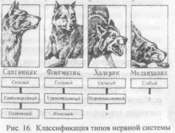 Животных с сильным типом делят на 3 группы в зависимости от уравно-нешенности и подвижности нер-вных процессов. Так, есть животные с сильными, неуравновешенными процессами, у которых возбуждение преобладает над торможением. Это, как правило, легко возбудимые, агрессивные животные. По классификации Гиппократа они отно-