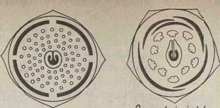 Венчик цезальпиниевых также более или менее неправильный, но верхний лепесток, гомологичный флагу, занимает в почке внутреннее положение. У мимозовых все лепестки одинаковые — свободные или сросшиеся (рис.2).