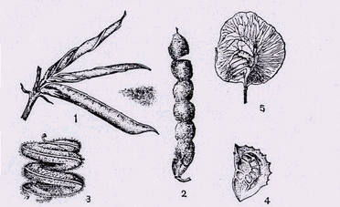 5 – крылатый одно–двусемянной боб красного сандалового дерева.