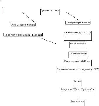 Бифилакт. (ТУ БГ-003-00-98) Кисломолочный продукт, вырабатываемый сквашиванием цельного пастеризованного молока симбиотической закваской, состоящей из молочнокислых и бифидобактерий. Продукт изготавливается по следующей схеме (рис.3).