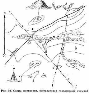 Рассмотрим некоторые приемы глазомерной съемки, применяемые при составлении схем местности.