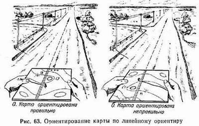 По линейному ориентиру карта может быть ориентирована приближенно или точно.