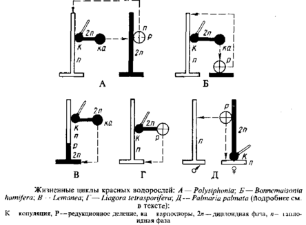 Сказанным не исчерпывается все разнообразие жизненных циклов красных водорослей.