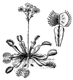 Особенно интересна венерина мухоловка, растущая на болотах штата Каролина в Северной Америке. Это небольшое растение активно захлопывает створки листьев, когда насекомое заденет чувствительный волосок его листа.