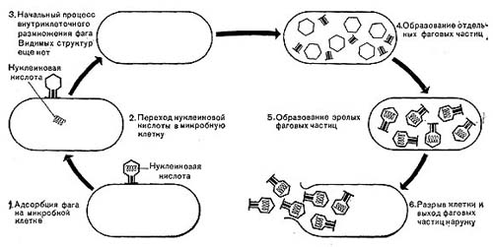Важнейшей особенностью размножения фага является то, что оно может происходить только в живых клетках, находящихся в стадии роста.