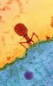 На конце фагового отростка имеется особый фермент типа лизоцима. После адсорбции фага под влиянием этого фермента происходит растворение стенки микробной клетки и содержимое головки фага — нуклеиновая кислота — перекачивается в микробную клетку. Этим завершается второй этап процесса размножения фага.