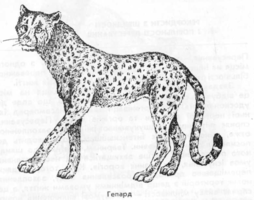 Чемпіоном серед них є гепард. Це хижак з родини кошачих, який плямистим хутром нагадує леопарда. Але багато в чому гепард відрізняється від інших кошачих: тулуб у нього порівняно короткий (близько 130 см), голова невелика, а ноги сильні, довгі й тонкі, з кігтями, які не втягуються. Ці ознаки наближають його до псових і забезпечують швидкий біг. Здобич свою він, подібно до інших кошачих, спочатку скрадає, а потім доганяє, розвиваючи на короткий час величезну швидкість - близько 112-115 км/год. Йому потрібно лише дві секунди, щоб біг його сягав уже 70 км/год; 650 м він пробігає за '/з хвилини.