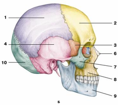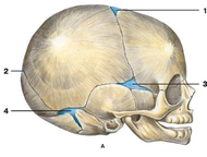 Соотношение размеров частей черепа новорожденного с длиной и массой его тела иное, чем у взрослого. Череп ребенка значительно больше, а кости черепа разобщены. Пространства между костями заполнены прослойками соединительной ткани или неокостеневшего хряща. Мозговой череп по размеру существенно преобладает над лицевым. Если у взрослого соотношение объема лицевого черепа к мозговому составляет примерно 1: 2, то у новорожденного это соотношение 1: 8.
