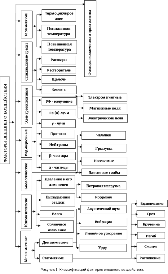 Известно, что качество изделий, а под термином «изделие» будем понимать технические системы самого различного назначения, закладывается на стадии разработки, обеспечивается в процессе производства и поддерживается на стадии эксплуатации. Разрабатывая изделия, необходимо учитывать условия их эксплуатации, хранения и транспортирования, характеризующиеся воздействием внешних и внутренних факторов.