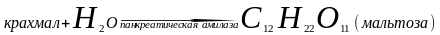 Переваривание углеводов начинается в полости рта, где слюнная амилаза, (птиалин) действует на крахмал и гликоген, превращая их в смесь Д-глюкозы, мальтозы и олигосахаридов. Переваривание углеводов завершается в тонком кишечнике, где переваренный под действием птиалина крахмал подвергается дальнейшему воздействию панкреатической амилазы, конвертируется в мальтозу. В конечном итоге вся мальтоза под действием маль-тазы конвертируется в глюкозу.