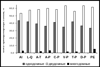 | Однодомные | 31 | 27 | 41 | 44 | 33 | 22 | 30 | 27 | 46 | |