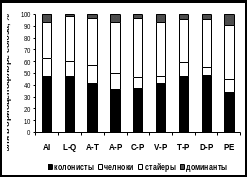 Примечание. AI – Alnion incanae, L-Q – Lathyro-Quercion, A-T – Aconito-Tilion, A-P – Aconito-Piceion, C-P – Caragano-Pinion, V-P – Veronico-Pinion, T-P – Trollio-Pinion, D-P – Dicrano-Pinion, PE – Piceion excelsae.
