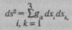 Риман, в результате продолжительных поисков адекватного описания свойств физического пространства, пришел к мысли, что описание пространства должно быть локальным (от лат. localis — местный), ибо свойства пространства могут изменяться от точки к точке (от места к месту). Квадрат расстояния ds между двумя бесконечно-близкими точками в пространстве (в котором введена система координат x1, х2, х3) может быть представлен в виде некоторой двойной суммы по индексам i и к = 1, 2, 3:
