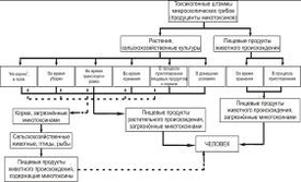 Пути загрязнения пищевых продуктов микотоксинами схематично представлены на рисунке 3.