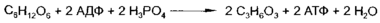 Гликолизу может также подвергаться глюкоза, поступающая в мышцы из кровяного русла. Анаэробный распад глюкозы протекает по Уравнению: