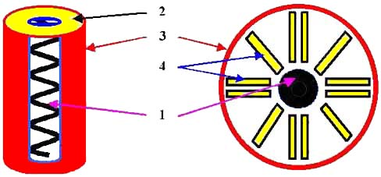 Рис. 2. Схематичное строение вируса: 1 - сердцевина (однонитчатая РНК); 2 - белковая оболочка (Капсид); 3 - дополнительная липопротеидная оболочка; 4 - Капсомеры (структурные части Капсида).