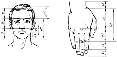 Закон «золотого сечения» просматривается и в количественном членении человеческого тела. Сопоставляя длины фаланг пальцев и кисти руки в целом, а также расстояния между отдельными частями лица, можно найти «золотые» соотношения. Скульпторы утверждают, что талия делит совершенное человеческое тело в отношении «золотого сечения». Измерения нескольких тысяч человеческих тел позволили обнаружить, что для взрослых мужчин это отношение равно в среднем примерно 13/8 = 1,625, а для взрослых женщин оно составляет 8/5 = 1,6. Так что пропорции у мужчин ближе к «золотому сечению», чем у женщин. Именно поэтому, чтобы приблизиться к «золотым стандартам», женщины предпочитают обувь на каблуках.