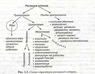 Узагальнюючи всі ці погляди, Є.М.Макрушина (1995) пропонує таку логічну схему структури рослинної клітини (рис.1.3).