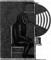 Сначала результаты подобных опытов разочаровывали: после нескольких месяцев зрение в обоих глазах оперированного животного оставалось нормальным, и Хьюбель и Визелъ уже были готовы прекратить эту напряженную серию экспериментов (личное сообщение). Тем не менее они смогли получить следующие данные о работе корковых клеток. Отдельные корковые клетки имели нормальные рецептивные поля и живо отвечали на определенным образом ориентированные стимулы. Однако почти каждая клетка отвечала только на стимуляцию одного глаза, некоторые управлялись правым, некоторые — левым, но практически ни одна — обоими глазами. Клетки, как обычно, были сгруппированы в колонки по отношению к глазному предпочтению и к ориентации оси зрительного поля. Как и ожидалось, возникала атрофия в области ЛКТ, хотя колончатая архитектура слоя 4 оставалась без изменений. Почти полное отсутствие бинокулярного представления в коре показано на гистограмме, полученной от обезьяны с искусственно вызванным косоглазием (рис. 2). Критический период для смещенного (из-за косоглазия) восприятия, в течение которого возникают данные изменения, близок к критическому периоду монокулярной депривации.