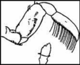 Передняя конечность кориксы. Вверху — «музыкальные» зубчики на конечном членике, внизу — отдельный зубчик в сильно увел. виде.