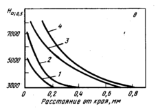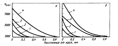 Изменение микротвердости от поверхности вглубь образца в зависимости от температуры и времени выдержки представлено на рис 3. Микротвердость снижается от поверхности внутрь образца при всех режимах газонасыщения.