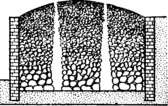 внизу—большие, сверху—маленькие. При этом обязательно оставляли вертикальные ходы для тяги. Этот процесс малоэффективен: 45% потерь, так как часть серы сжигают для получения теплоты, необходимой при выплавке серы из руды.