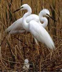 Большая белая кричит редко. Голос ее — «грубый, хриплый треск». Малая любит покричать: голос — каркающее «арк-арк-арк».
