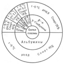Рис. 1.2. Диаграмма фракционирования белков плазмы крови человека этанолом (по методу Кона).
