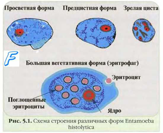 Микроскопия нативных препаратов. Небольшое количество испражнений наносят на предметное стекло, диспергируют в капле физиологического раствора, накладывают покровное стекло и исследуют под микроскопом на наличие трофозоитов (в жидкие испражнения физиологический раствор не вносят). Нативные препараты можно слегка докрашивать раствором Люголя, что облегчает выявление цист. Особенно внимательно необходимо исследовать кровь и слизь; желательно готовить отдельные препараты, не контаминированные (по возможности) фекальными массами.