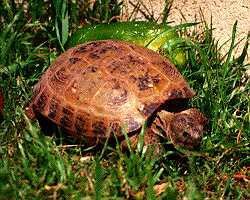 В рацион черепахи входят капустные листья, салат и одуванчики летом. Из фруктов охотнее поедает яблоки, куски дыни, арбуза, тыквы. Из ягод - клубнику, малину, вишню. Помидоры, огурцы, морковь привлекают в последнюю очередь. Надо заметить, что моя черепаха практически не ест тепличные огурцы и совершенно не приемлет продаваемый в магазинах салат, в то же время приобретенный у бабушек огородный салат поедает с удовольствием. При отсутствии в нужный момент под рукой растительных кормов можно предложить густо сваренные и, конечно, не горячие манную и гречневую каши, творог, наконец, белый хлеб, слегка размоченный молоком.