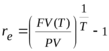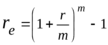 Определение: годовая ставка сложных процентов, дающая то же соотношение между выданной суммой PV и суммой FV, что и при любой схеме выплат называется эффективной.