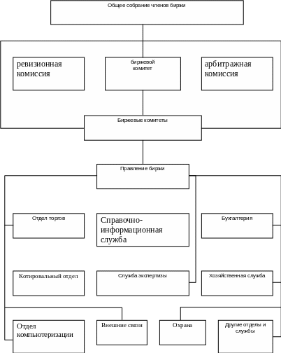 Второй отличительный признак биржи – организация. Биржа – организованный рынок, т.е. в ней есть органы для определенных функций, связанных с управлением, поддержанием порядка, нормировкой биржевых сделок и т.д. Рынок такого устройства не знает. Единственный орган, который свойственен рынку, занимается поддержанием порядка. Продавцы и покупатели на рынке представляют собой большую неорганизованную массу. Но всюду, где рынок поднимается до уровня биржи, появляются органы. Однако эти органы не везде одни и те же. Каждая биржа имеет свое организационное строение, но все имеет, по крайней мере, биржевой комитет – главный и высший орган биржи.