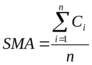 Скользящее среднее показывает среднее значение цены за некоторый промежуток времени. Общий принцип сигналов скользящими средними формулируется так: если линия скользящей находится ниже ценового графика, то ценовой тренд является бычьим, а если выше, то тренд – медвежий; при пересечении графика цены со скользящей средней ценовой тренд меняет направление. Простое, или арифметическое, скользящее среднее (рис.3.2) рассчитывается путём суммирования цен закрытия за определённое число единичных периодов с последующим делением суммы на число периодов. В результате получается средняя цена за данный временной интервал и ценам каждого из дней присваивается равный вес.