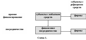 На схеме 1 показано отличие прямого финансирования от посредничества: