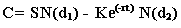 дает приведенную стоимость выплаты цены исполнения (цены страйк) на дату истечения опциона. Объективная рыночная стоимость опциона колл рассчитывается путем вычитания второй части формулы из первой.