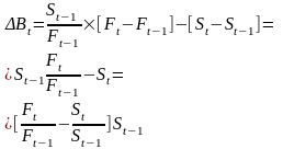 Из последней формулы следует, что мы предполагаем равное относительное изменение курсов, то есть, на сколько процентов изменился курс спот, на столько же изменится курс фьючерс.
