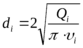 Диаметры воздуховодов на каждом участке определяют по формуле: