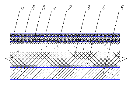 2 -Слой гравия на дегтевой битумной мастике; 3 - пенополистироловая плита 4 - рубероид, наклеенный на горячем битуме расчетные сопротивления паропроницанию кв.м·ч·мм рт.ст/г =10,3; 5 - железобетонные плиты;