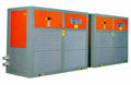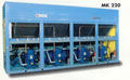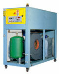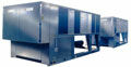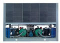 Компрессор холодильного контура герметичный. Электродвигатель компрессора оснащен внутренней защитой от электрических и тепловых перегрузок. Смазка обеспечивается зубчатым насосом. Каждый компрессор оборудован ТЭНом, нагревающим картер во избежании конденсации паров хладоносителя при простое. Все агрегаты установлены на резиновых опорах во избежании вибрации корпуса.