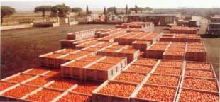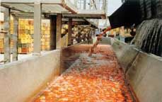 | | Разгрузка томатов в водный конвейер |
