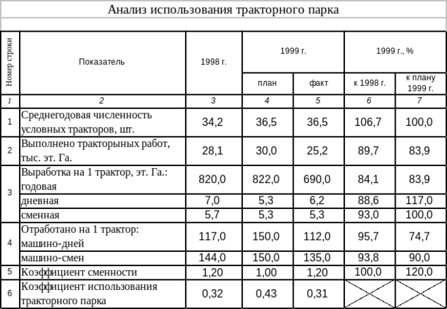 Эффективность машинотракторного парка приведена в соответствующих таблицах (см. выше). Если посмотреть на таблицу «Анализ использования тракторного парка», то сразу бросается в глаза низкий коэффициент использования парка. Это обусловлено тем, что в сельском хозяйстве характер работы – сезонный. Если мы более внимательно посмотрим на таблицу, анализирующую использование тракторного парка, то увидим, что годовая выработка на 1 трактор составляет 83,9% от плановой. Дневная же выработка составляет 117% от плановой. Т. е. в зимний период тракторный парк эксплуатируется минимально, а в летний – максимально, даже с перегрузкой.