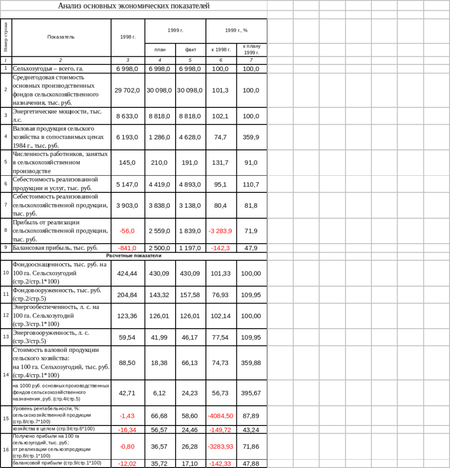 Сложившаяся в данный момент общероссийская экономическая ситуация далеко не благоприятна для производства сельхозпродукции. Из-за непомерно высоких цен на запасные части, комплектующие и горюче-смазочные материалы, сельское хозяйство, как производитель сырья для пищевой промышленности не является рентабельным, о чем свидетельствуют показания в «Анализе основных экономических показателей»