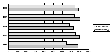 | Производство валовой продукции (в сопоставимых ценах 1994 г.), тыс. руб. | ||||||