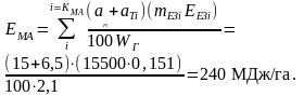 | qпi | — | енергетичний еквівалент і-го виду паливо-мастильних матеріалів, МДж/кг; |