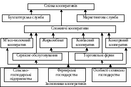 У практичній діяльності доцільним є створення багатопрофільних кооперативів, що мають замкнутий цикл: виробництво-переробка-збут сільськогосподарської продукції. Рекомендована базова структура багатопрофільного кооперативу за технологічним принципом наведена на рис. 1.
