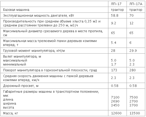 Модернизированная машина ЛП-17А отличается повышенной мощностью, более совершенной конструкцией манипулятора и кабины, а также повышенной надежностью как самого трактора, так и технологического оборудования.