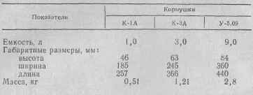 Кормушки К-1А и К-ЗА представляют собой емкости из белой жести четырехугольной формы вместимостью соответственно 1 и 3 л. Габариты кормушек позволяют устанавливать их в наиболее теплом месте улья - над рамками, что не вызывает излишнего беспокойства пчел.